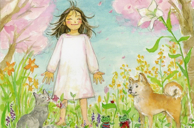 オリジナルデザインの春の息吹をいっぱい吸いこむ少女と動物たちの水彩画のポストカード。 絵画のように額に入れて飾るのに最適。癒されます。 もちろん絵はがきとして使えますし、また、イベント、会合などの記念品や景品として、誕生日プレゼントやお世話になっている方や大切な方への贈り物にもお勧めです。 一枚ずつ透明シートにお入れします。
