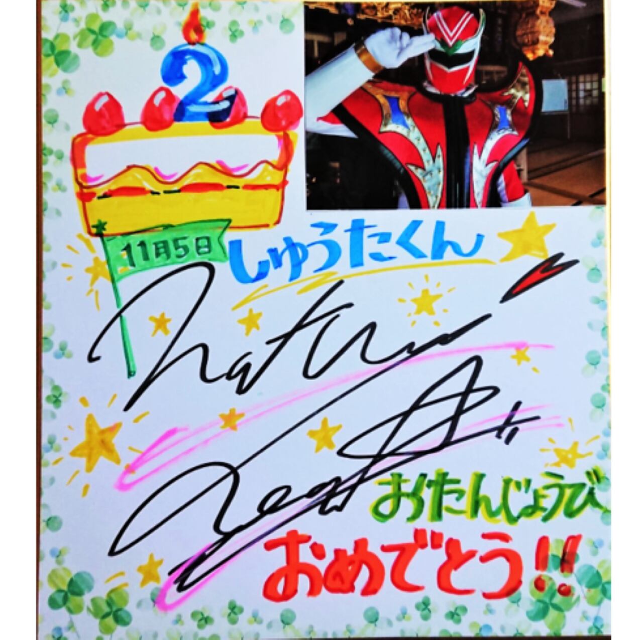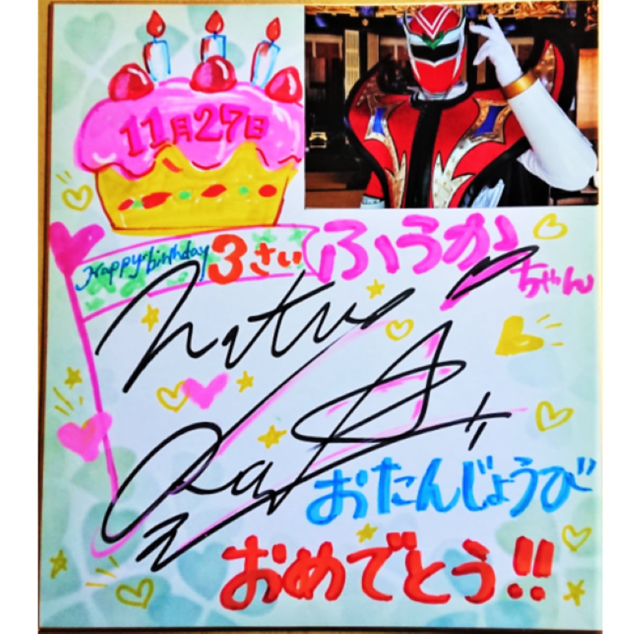 自然の正義と平和を守る慈悲系ヒーロー、ネイチャーレッドの直筆サイン色紙です。